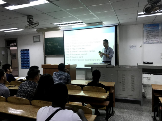 (通讯员 冯亮)2019年9月20日下午3点,国际教育学院冯亮老师对2019年秋季入学的近100名国际学生新生学籍注册流程进行了详细讲解,包括入学材料核验、体检、住宿登记、学费缴纳说明、信息系统注册以及签证延期等入学注册手续等重要步骤。同时对长江大学学籍和学位管理规定进行了讲解,说明了国际学生毕业和获得学位需要达到相应要求。
