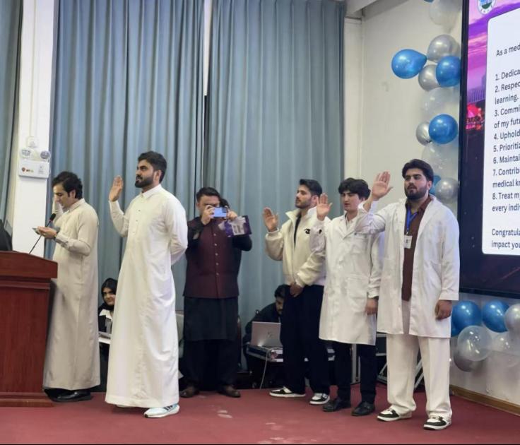 活动尾声,SEA Learner协会主席团成员萨米尔与萨尔曼带领全体国际医学新生进行庄严的医学职业宣誓。学子们高举右拳,郑重承诺:“将坚守医学初心,以诚信立身、以热爱立业、以奉献立行,终身致力于医疗事业。”他们更在誓言中表态,未来不仅要刻苦钻研,成长为医术精湛的医务工作者;更将深耕医学创新,研发新型医疗设备与诊疗技术,以实际行动为长江大学争光,为中国乃至全球医疗事业发展贡献力量,绝不辜负青春与使命。