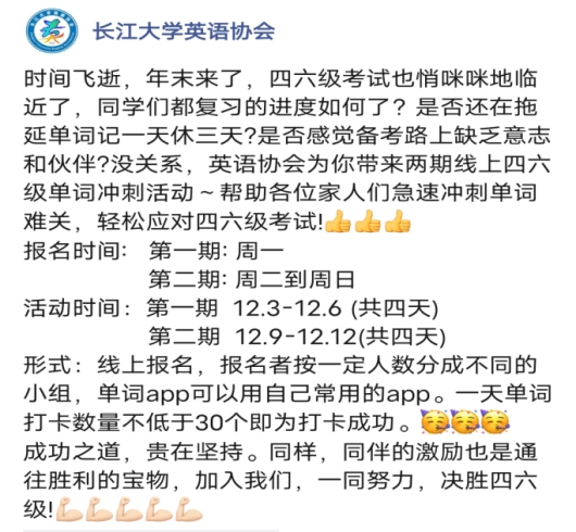 长江大学英语协会(Yangtze University English Association )是1989年经长江大学团委、大学生社团联合会批准成立的一个学术性学生社团。